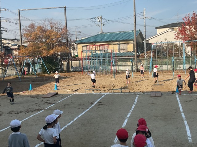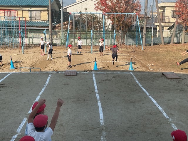 今日は踏切板で跳んだり、ゴムひもやミニハードルを跳び越えたりながら