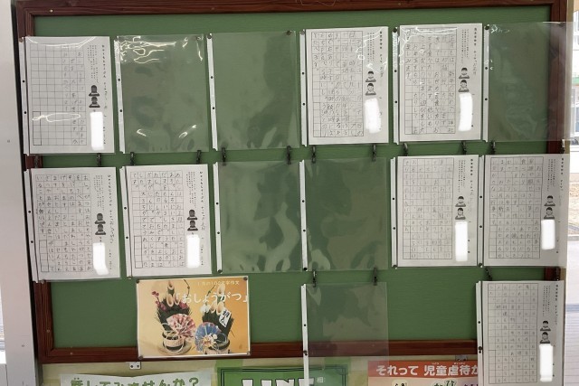 しっかり書けている作文は職員室前掲示板に掲示しています。