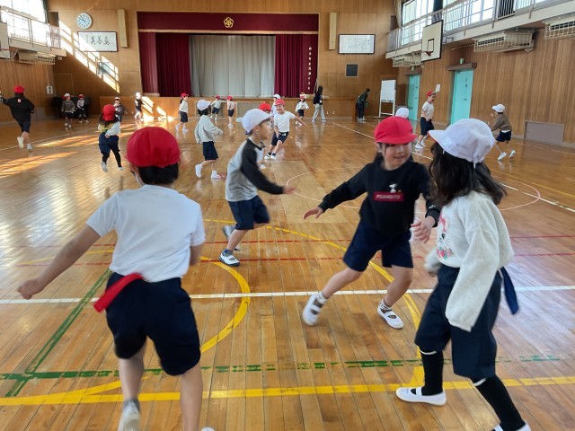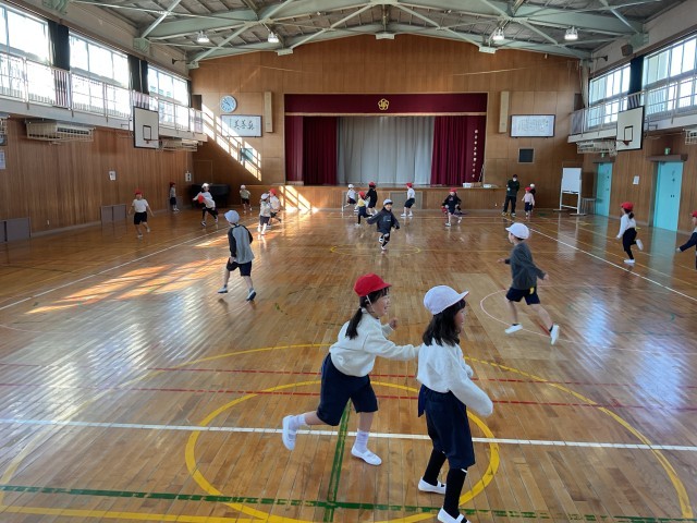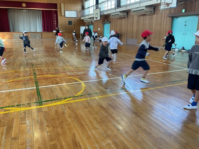 みんな元気いっぱい一斉に体育館の中をかけまわりました。