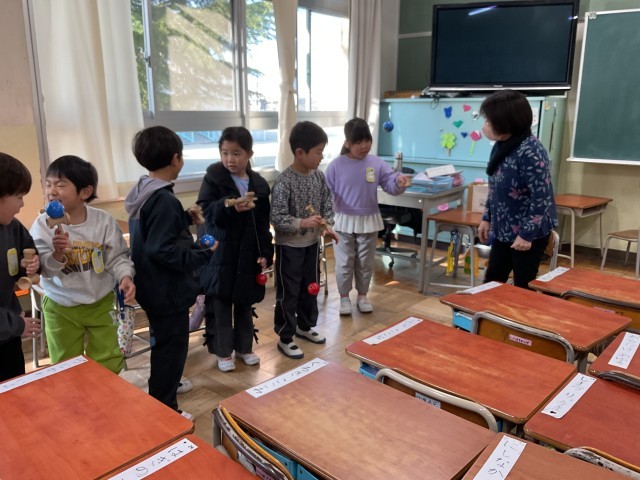 2月4日 1年生 昔あそび 公開日 2026/02/04 更新日 2026/02/04 津田小っ子の今をお知らせします 地域の方をお招きして、けん玉、こま回し、お手玉、めんこなど昔あそびをしました。慣れない遊びに苦戦する子どもたち。でも、楽しく取り組むことができました。 いいね(0)