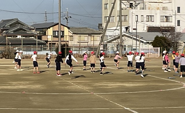 2年生 体育 なわとび 公開日 2026/02/04 更新日 2026/02/04 津田小っ子の今をお知らせします 先生のお手本を見て練習しました。前回しは、みんな上手ですが後ろ回しになると難しいですね。なわとびは、リズム感や手足の共動が大切です。長く跳ぶには持久力も必要ですのでとてもいい運動です。学校だけでなくお家でも継続して取り組んで、上達するといいですね。 いいね(0)