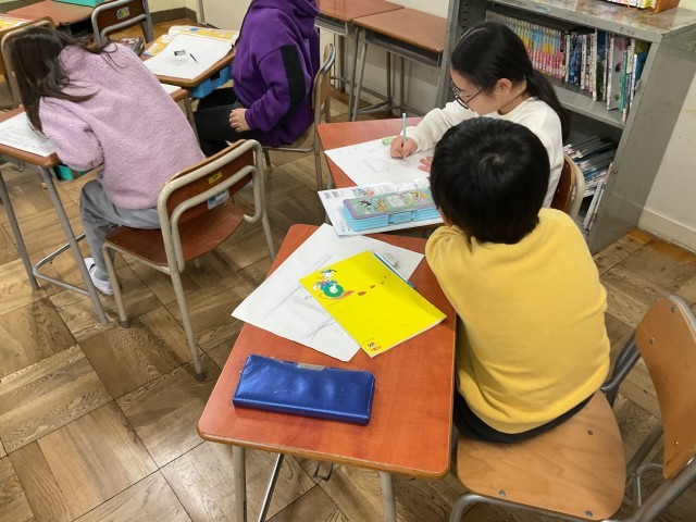 お友達と話しながら、よーく考えて描いていましたよ。