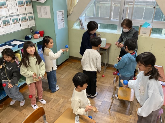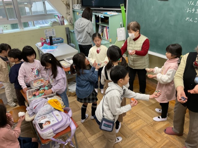 2月10日 1年生 昔あそび 公開日 2026/02/10 更新日 2026/02/10 津田小っ子の今をお知らせします 前回は学級閉鎖で昔あそびができなかった2組さん。今日も地域の皆様に来校していただき、お手玉・けん玉・めんこ・こまを教えていただきました。こま回しは、ひもをこまに巻くところから苦戦しました。教えていただいてなんとか巻けるようになりましたが、こまを投げるのにもコツがいるので地道な練習が必要ですね。 +1 いいね(0)
