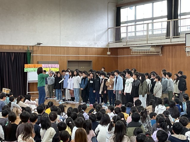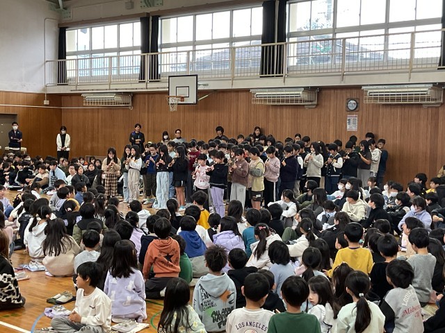 感謝の集い 2 公開日 2026/02/12 更新日 2026/02/12 津田小っ子の今をお知らせします 1・2年生は、折り紙で作った花束やリースを感謝の言葉と一緒に渡しました。3年生以上は、言葉と合奏や歌などで感謝の気持ちを伝えました。 いいね(1)