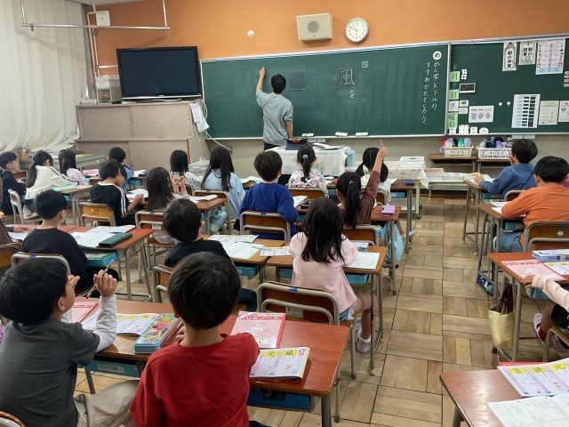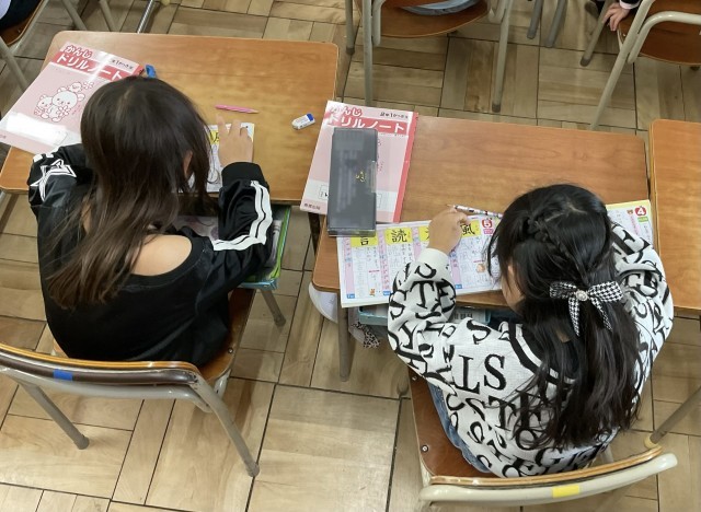 教室をのぞいてみると、2年生では、漢字の学習をしていました。