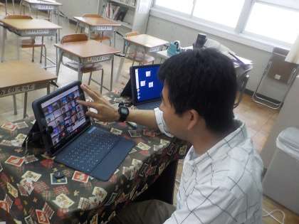 2年生も朝の健康観察とともに、学習の指示を出しているクラスも。