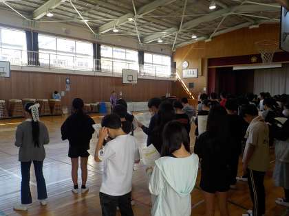 6年生は、平和記念公園の「平和の子の像」の前で行うセレモニーの練習と、出発前に行う児童集会での発表の練習をしていました。