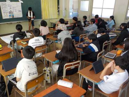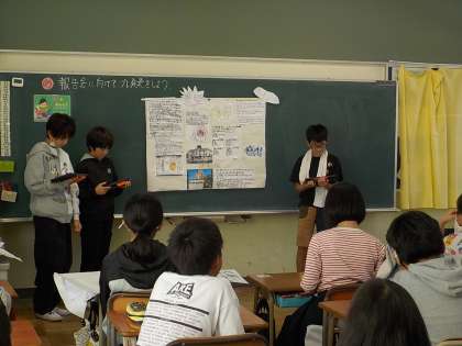 クラスメイトの発表を、しっかりと聞く子どもたち。