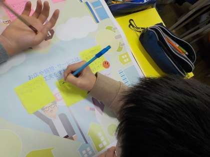 話を聞き、VR体験をした後、子どもたち自身は、「認知症の方の気持ち」「認知症の方に対するサービス等」について考え、話し合いました。