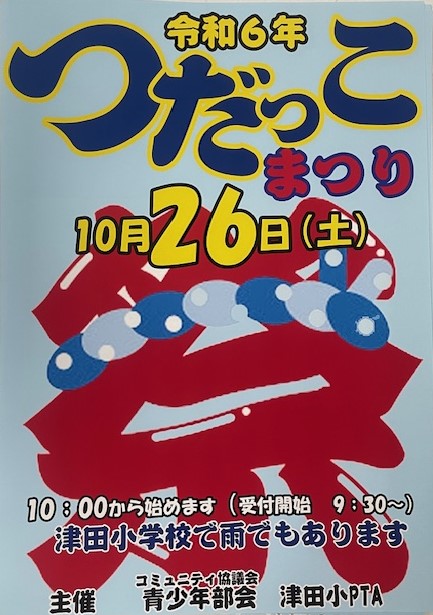 校区コミュニティと津田小PTAが主催するおまつりが、10月26日(土)にあります。