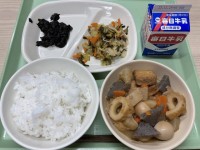 今日の給食の献立は、「ホイコウロウ・焼売・黒糖ビーンズ・ご飯・牛乳」です。たっぷりの野菜と豚肉をしっかり炒められ、色々な調味料で美味しく味付けされています。コクもあり、ご飯もすすむ一品でした。