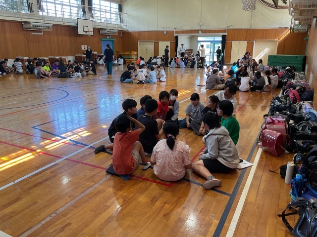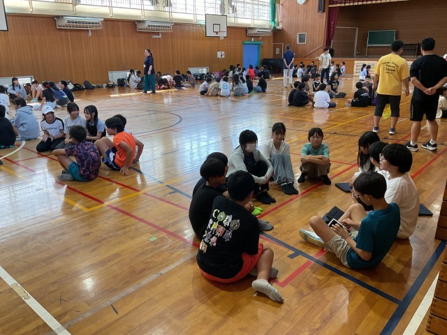 本校の6年生は、2学期の修学旅行に向けて、長尾小学校の6年生と「平和」についての交流を行っています。今回は本校の児童が長尾小学校を訪問し、体育館で少人数のグループに分かれて、タブレットや紙を使った発表を聴きいています。「難民問題、少年兵、原爆被爆、飢餓、地球温暖化、北方領土、地雷の恐ろしさ」など、長尾小の子どもたちは、幅広い視点でまとめた内容を丁寧に説明し、本校の子どもたちも真剣に耳を傾けています。