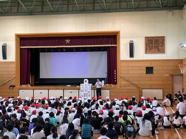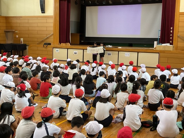 ・生活指導担当の先生から、廊下や階段などの通行の仕方について、みんなに気をつけてほしいことのお話がありました。自分がけがをしないこと、他の人にけがをさせないこと、そして周囲に迷惑をかけないようにすることなど、安全に学校生活を送るための大切な内容です。DVDを視聴したあと、先生からも具体的なお話があり、子どもたちは真剣に耳を傾けていました。今日のお話を心に留めて、これからも安全に過ごしていきましょう。