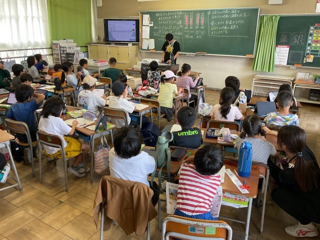 3年生の理科の授業では、「日なたと日かげの地面の温かさはどれくらい違うのだろうか?」をめあてに学習を進めています。前回の授業では、太陽と地面の関係について興味を持って、実際に校庭で地面の温度を測定し、日なたの地面は太陽の光で暖められるため、日かげよりも温度が高いことを確かめました。また、時間が経つにつれて気温が上がると、日なたの地面の温度も上がることも学習し、理解を深めています。