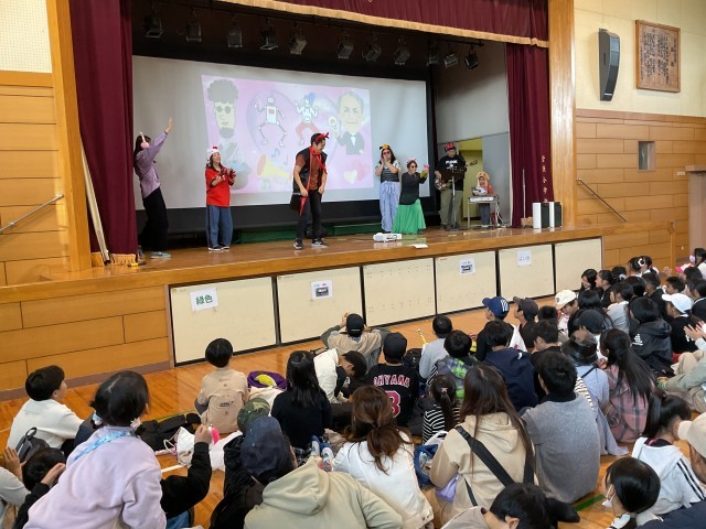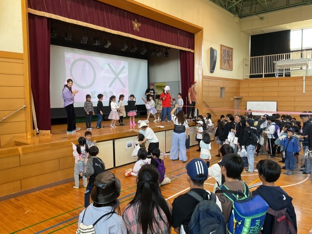 体育館内では、今年も『エキストラショー』として、先生たちによる歌やダンスのパフォーマンスが披露されました。菅原小の子どもたちや保護者の皆さんと一緒に歌ったり、手拍子をしたりと、会場は大いに盛り上がり、笑顔あふれる楽しい時間となりました。