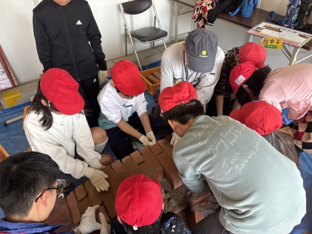 レンガブロックと砂を使って、アーチ橋の構造や原理を学びながら、実際に橋を組み立てる体験をしています。力の伝わり方や橋の安定性について、実際に手を動かしながら理解を深めることができました。