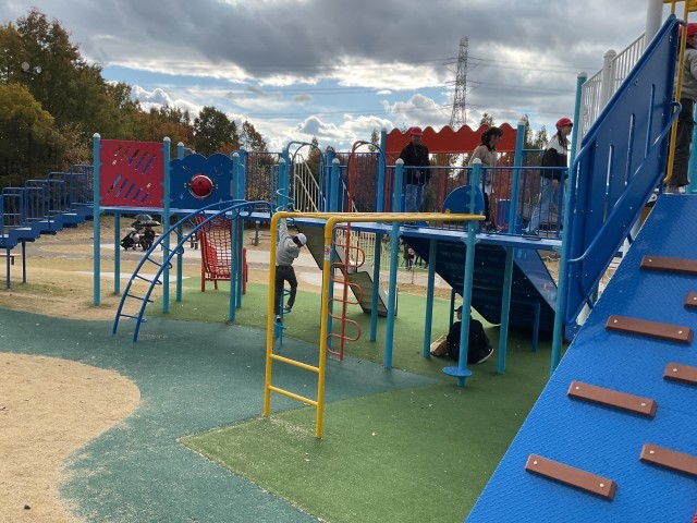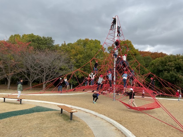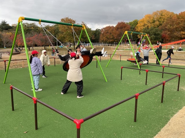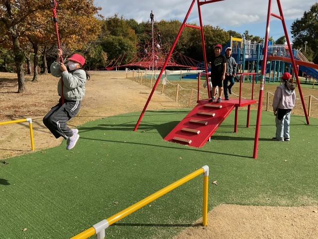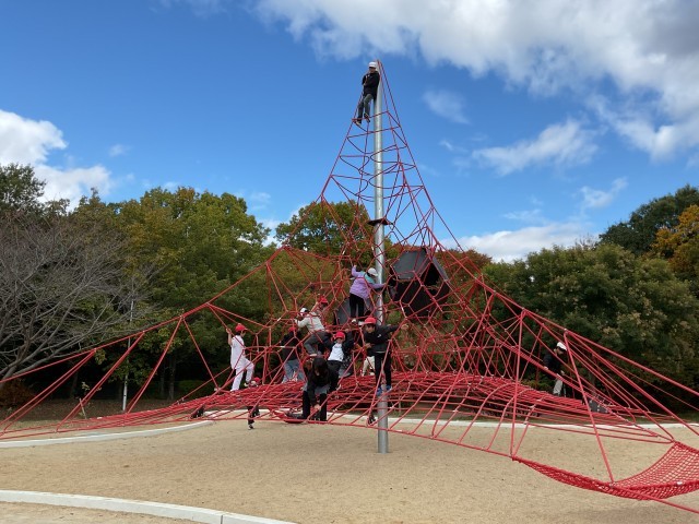 食後は、公園内の遊具で元気いっぱい遊び、その後、学校まで歩いて帰りました。