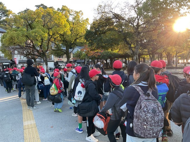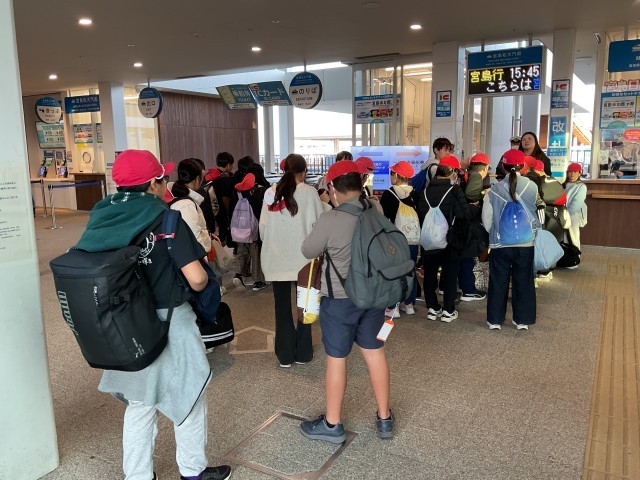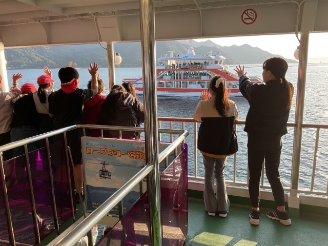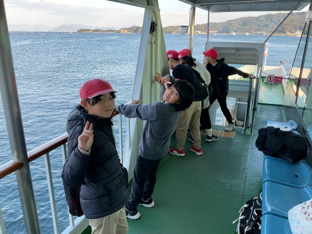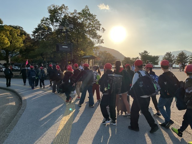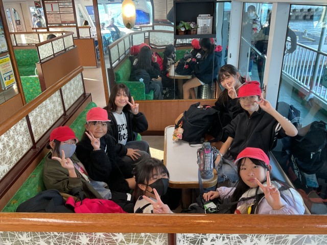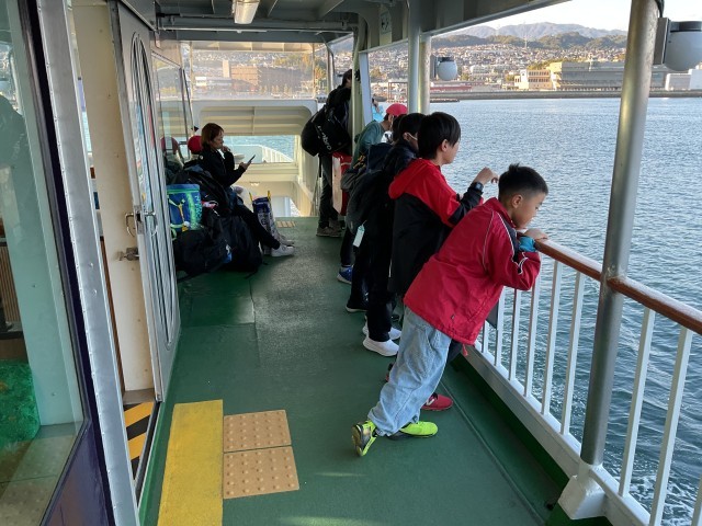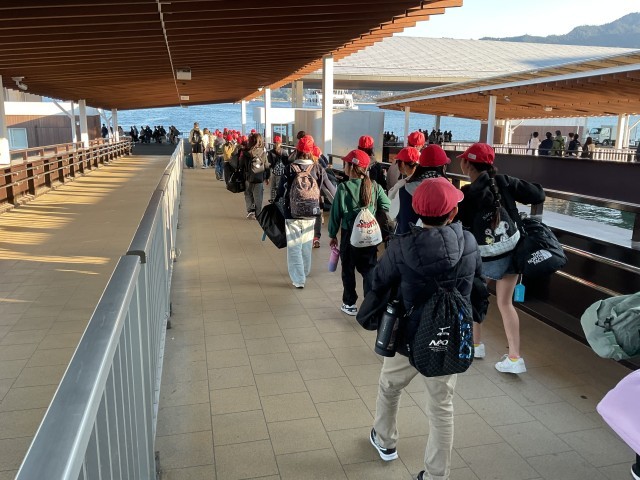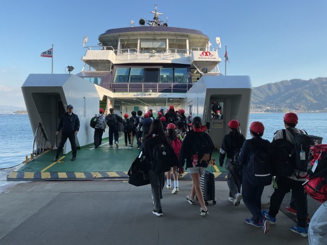 11月21日(金) 修学旅行 1日目(6年生)その6 公開日 2025/11/21 更新日 2025/11/21 学校の様子 子どもたちは再びバスに乗り、平和記念公園より宮島口に移動しました。その後、宮島行きのフェリーに乗り、短い時間ではありましたが、海風を感じながら楽しく過ごし、宮島へ渡りました。 +7 いいね(2)