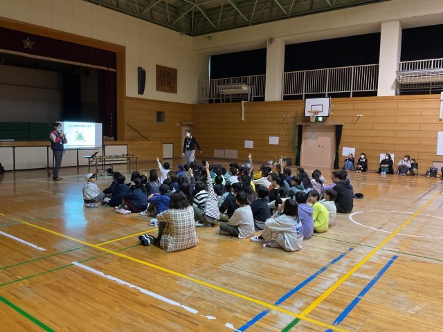 その中では、「よいうんちを出して、おなかを元気にしましょう」といったお話があり、子どもたちは講師の先生からの質問に積極的に手を挙げて答え、みんなで考えながら楽しく参加しています。また、良いうんちを出すためには「早寝・早起き・朝ごはん・朝うんち」が大切であることを学んでいます。