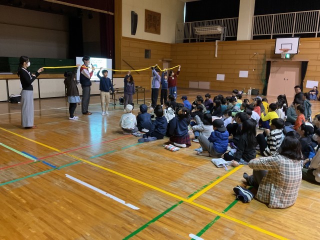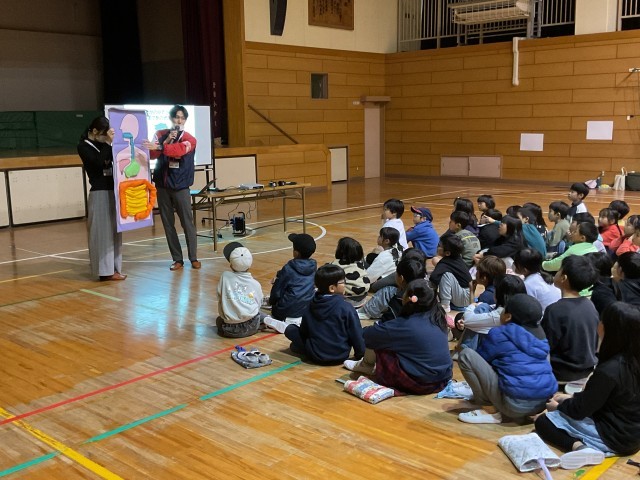講師としてヤクルトのスタッフの方をお招きし、「良いうんちを出し、お腹を元気に過ごすためにはどうすればよいのか」という大切なことを学ぶ出前授業を実施しています。
