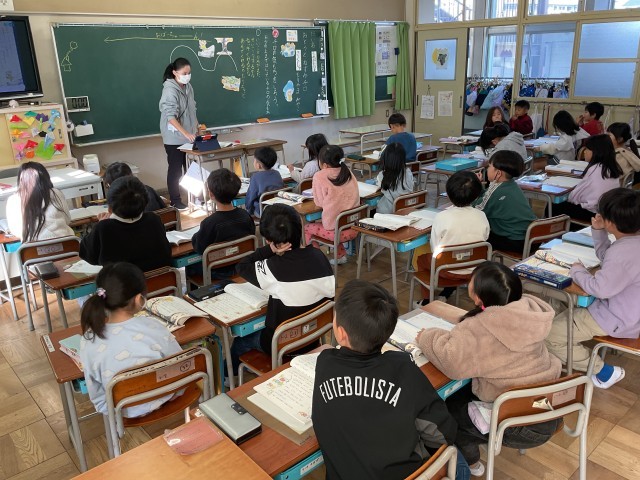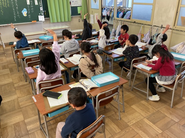 1年生の国語の授業では、物語『おとうととねずみのチロ』を使って学習を進めています。子どもたちは、場面ごとに主人公チロの気持ちを考えながら、物語の内容をしっかりと理解することをめあてに取り組んでいます。まず音読を通して物語の流れを確認し、その後「この場面でチロはどんな気持ちだったのかな?」と問いかけながら、登場人物の心情を読み取り、文章中の言葉や様子から自分なりに考えたことを発表しています。