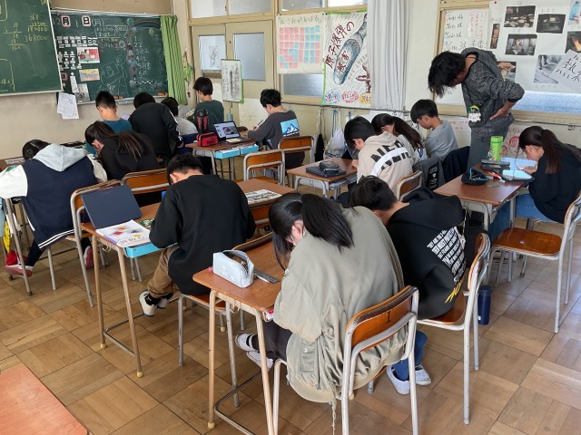 とても細かい作業で集中力を必要としますが、子どもたちは出来上がりの作品の画像や彫り方の動画を参考にしながら、慎重に、丁寧に、少しずつ模様を彫り進めています。