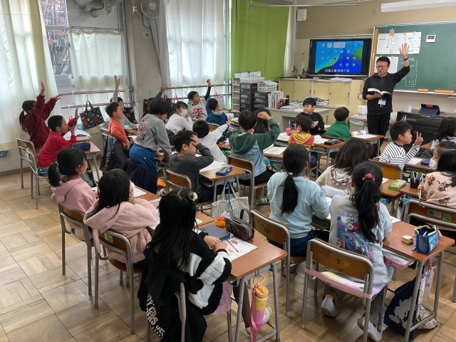 3年生は体育の単元「かけがえのない健康」の授業では、まず「健康とは何か」を考えています。「元気であること」「具合の悪いところがないこと」「やる気があること」など、子どもたちは先生と一緒に生活を振り返りながら考え、「心も体も調子がよい状態であること」が健康だと確認しています。さらに、健康な生活を送るために大切な生活習慣や生活の環境についても学び、健康の大切さを確認しています。