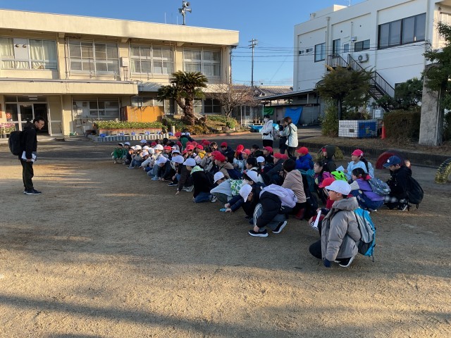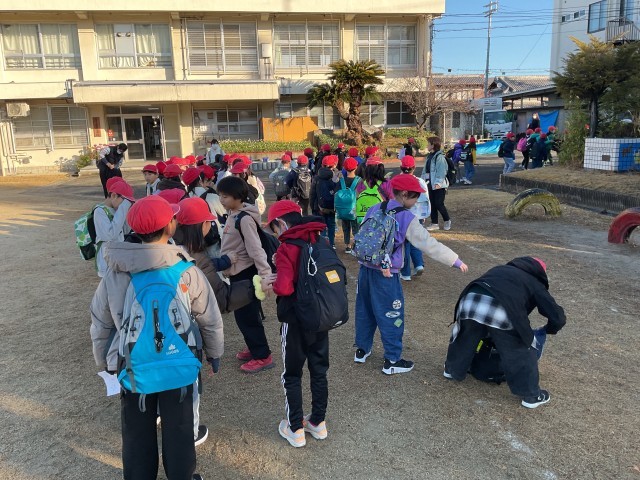 3年生は運動場で出発式を行い、その後、校外学習の目的地に向けて学校を出発しました。