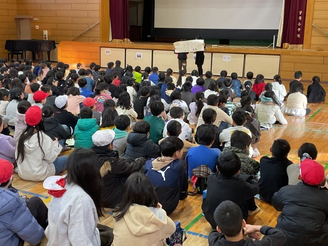 まず校長先生のお話がありました。子どもたちは、いつも通り姿勢を整えて、しっかりと耳を傾けていました。