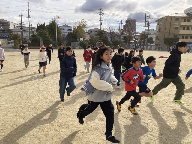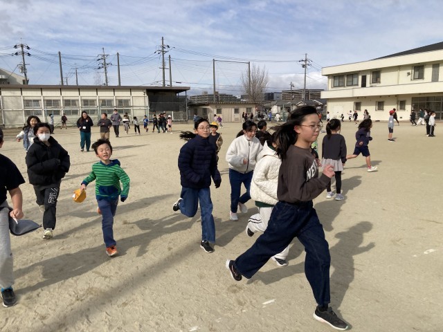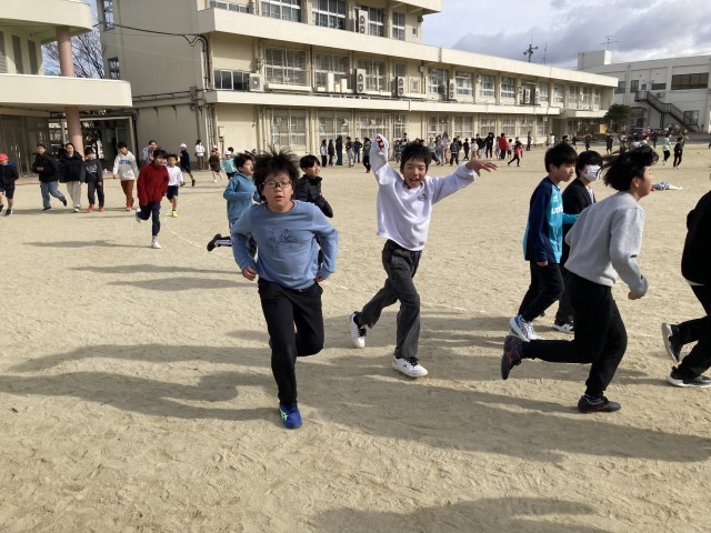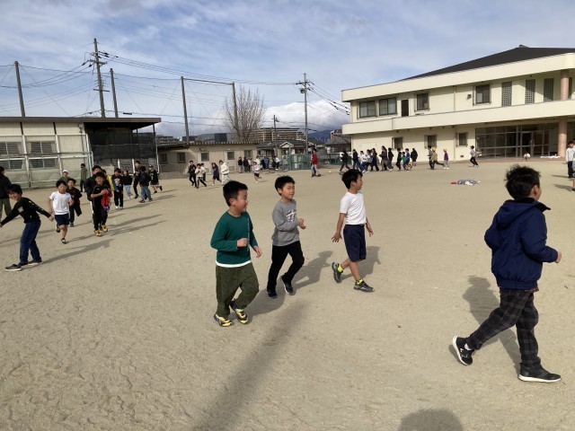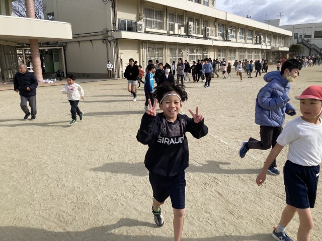 1月20日(火) 『日本縦断マラソン』(20分休み) 公開日 2026/01/20 更新日 2026/01/20 学校の様子 「日本縦断マラソン」2日目。今日は、昨日よりも多くの子どもたちが先生たちと一緒に走っています。「一緒に走ろう」と子どもたちから誘ってもらい、その元気に励まされながら私も走りました。たくさんの子どもたちが、先生たちと楽しそうに会話をしながら、笑顔で元気よく走っています。 +7 いいね(0)