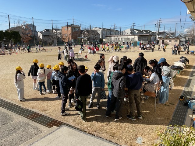 1、2年生の子どもたち、そして担当していない時間帯の3年生から6年生までの子どもたちは、友だちの工夫が詰まった色々なブースを回り、ゲームを楽しんだり、体験活動をしたりしながら、思い思いに活動を満喫しています。