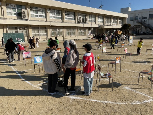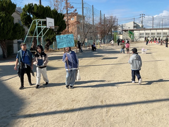 途中、自分たちのブースの宣伝のために、看板を持って運動場を回り、大きな声で呼び込みにも力を入れて頑張っています。