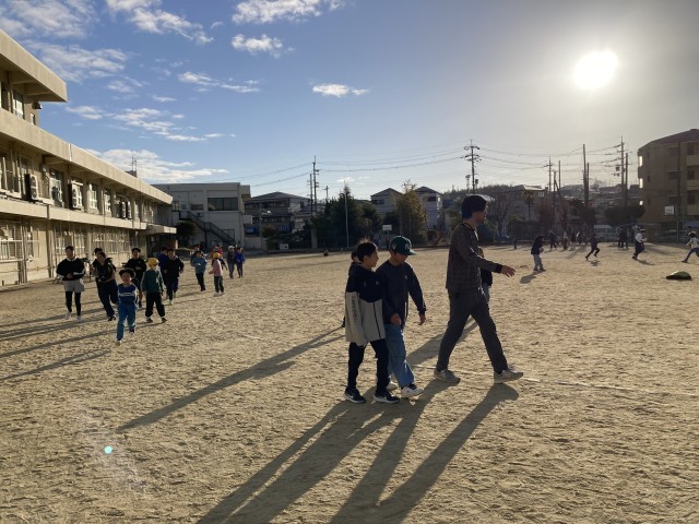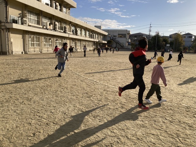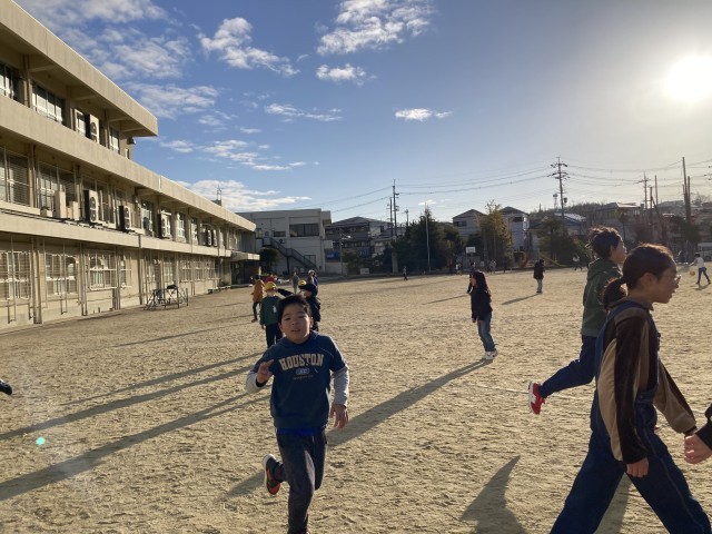 「日本縦断マラソン」8日目。1時間目の前の朝一の時間帯、朝日がまぶしく照る中で、子どもたちはドッジボールをしたり、縄跳びに何度も何度も挑戦したりと、一人ひとりが思い思いの楽しみ方で過ごしています。その中には、朝一番から元気に走っている子どもたちの姿も見られます。頑張れ〜!