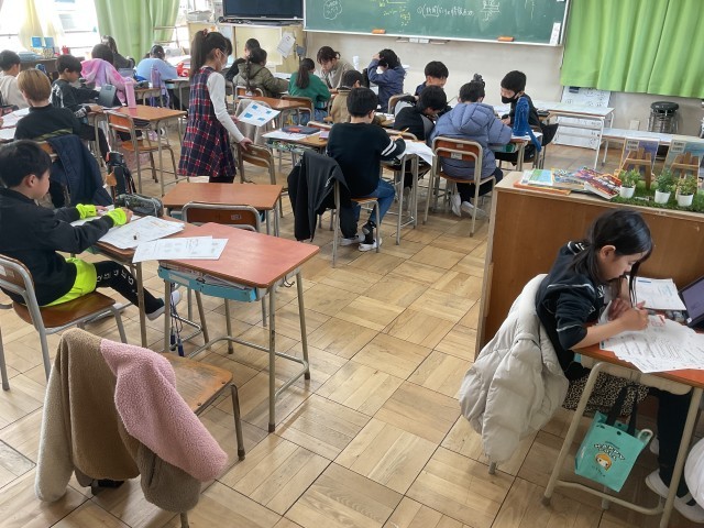 2月6日(金) 授業の様子(4年生 算数科) 公開日 2026/02/06 更新日 2026/02/06 学校の様子 4年生の算数の授業では、面積の求め方や面積の単位について、これまでに学習した内容を振り返りながら復習に取り組んでいます。子どもたちは問題に一人でじっくり取り組んだり、友だちと教え合って考えを確かめ合ったりしながら理解を深めています。これまでの学習を振り返りつつ、確実に身につけようとしています。 +1 いいね(0)