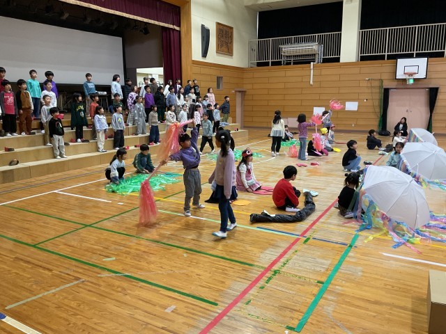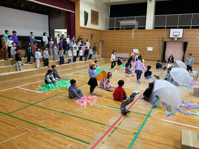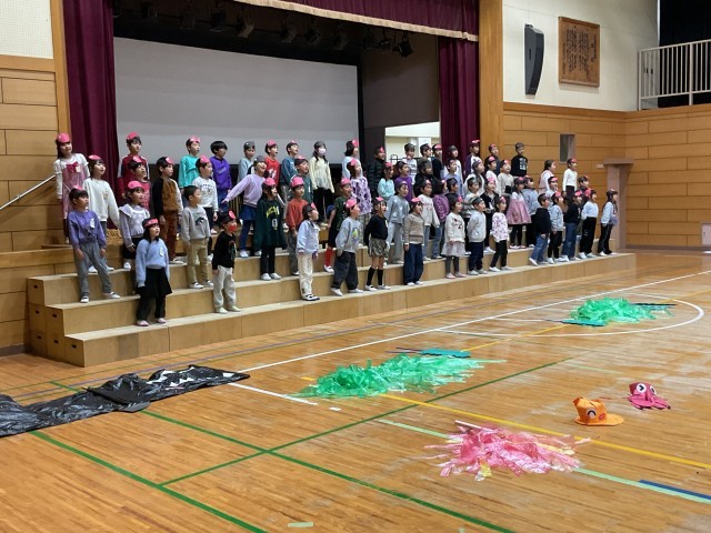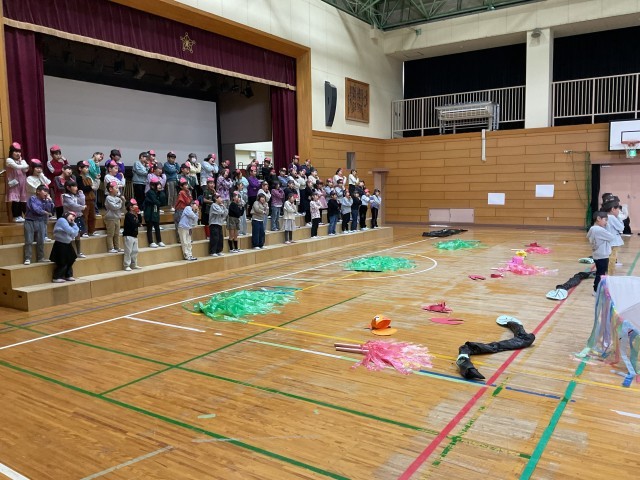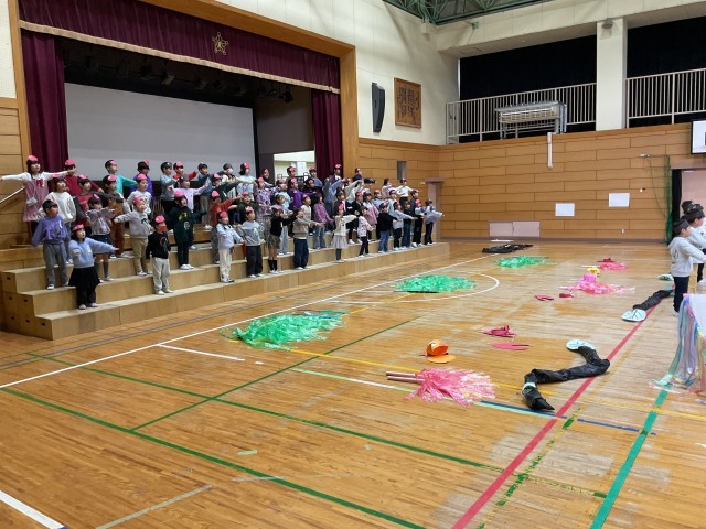 先生方が手作りされた様々な小道具を使った演技も、子どもたちは自信をもって、楽しそうに、最後までしっかりと演じています。4年生や保護者の皆さんに思いが届くよう、みんなで力を合わせて歌い、演じた、とても素晴らしい発表でした。