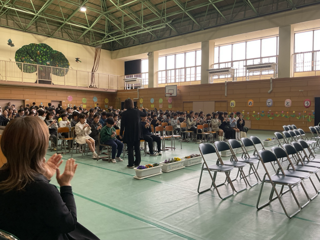 在校生代表の5年生によるお別れの言葉や合唱も、最後までしっかりと行われました。入場曲・退場曲では、さまざまな楽器を用いた演奏が式に彩りを添え、卒業式の雰囲気を一層盛り上げてくれました。6年生の思いをしっかりと受け継ぎ、次の学校の中心として歩んでいこうとする5年生の姿勢や意欲が感じられました。
