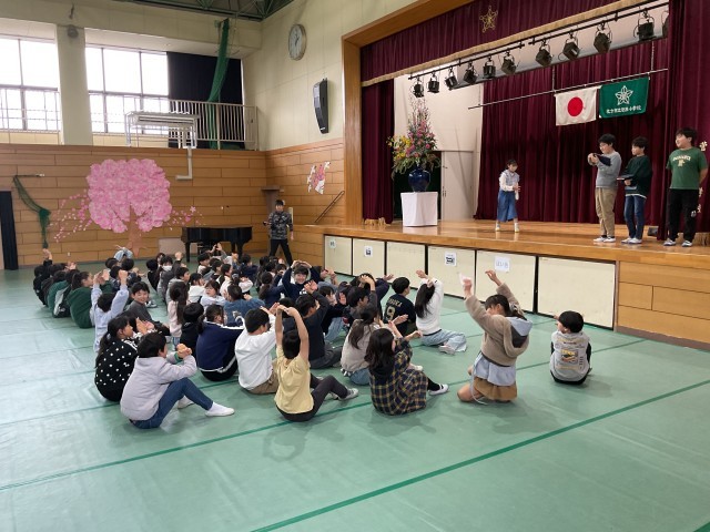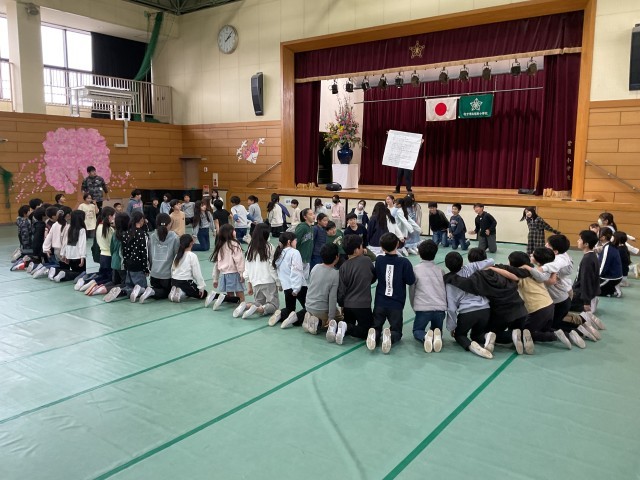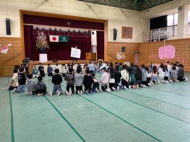 その後、5年生は、来月4月6日に行われる入学式での新入生歓迎の出し物のための練習に取り組んでいます。これまで5年生の子どもたちは、6年生を送る卒業式の練習と並行しながら、入学式の準備や練習にも、実行委員の子どもたちを中心に計画的に取り組んできました。責任感をもって主体的に行動する姿に、最高学年となる5年生の頼もしさを改めて感じます。5年生の皆さん、本番の入学式の日も、よろしくお願いします。