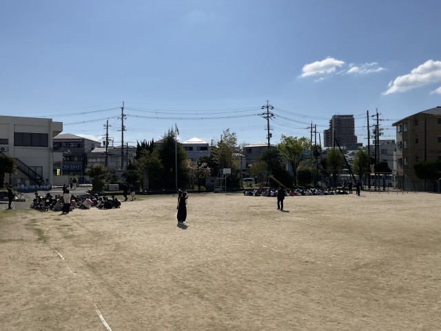 その後、青空の下、職員紹介とクラス発表を行いました。希望とやる気に満ちた子供達にとって、学校が安心で安全の場所になるように教職員一丸となって教育活動をすすめていきます。