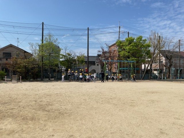 1時間目、運動場を見てみると、1年生が運動場探検をしていました。遊具の使い方や「すがもり」という、菅原小学校内にある小さな森を見て回っていました。いろいろと活動できる場所を知ったので活動範囲が広がると思います。ただ、「すがもり」にはビオトープもあるので入らないようにと先生から説明がありました。見るだけでも十分楽しめると思いますよ〜。