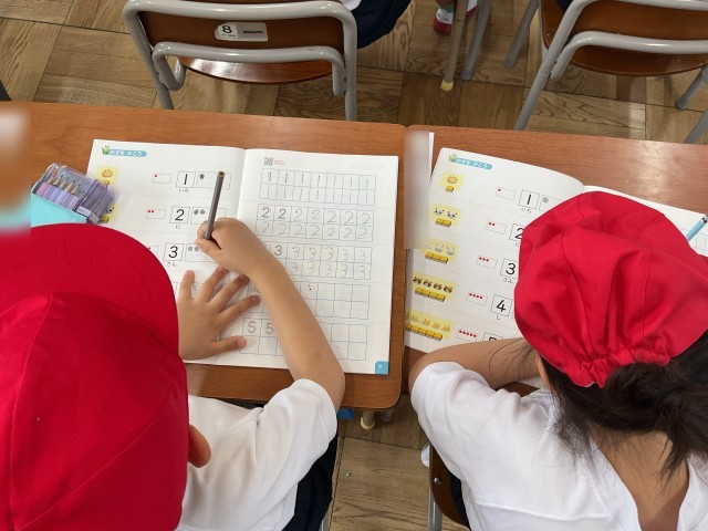 数字も「1、2、3、4」と進み、今日は「4」や「5」の書き方を学習していました。子供達は、「できた!」「書けた!」とうれしそうにしていました。ゆっくり、丁寧に書くことを意識していってほしいです。そして、書いた数字や字のいいところをしっかりほめてあげて、さらにやる気を引き出してあげたいです。
