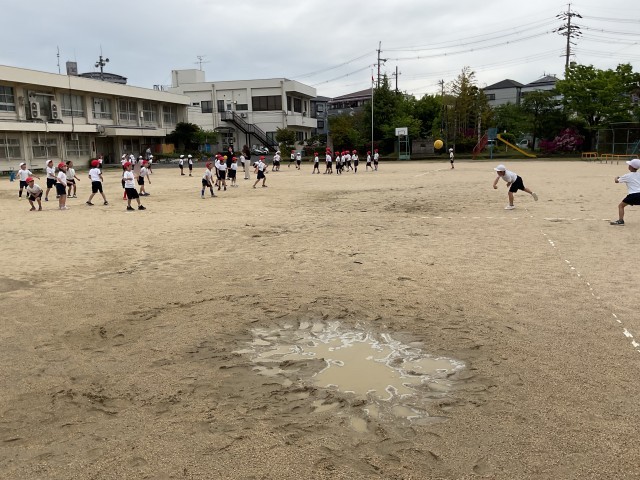 登校時、小雨が降ってましたが、1時間目にはすっかり小雨も止み、運動場には2年生の姿がありました。ドッジボールやドッジビーを通して元気に体を動かす2年生。気がつくと、ボールの数が2つのコートやドッジビーが3つのコートも!俊敏生や反射神経が鍛えられそうです。