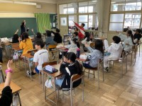 子どもたちは、(1)から(5)の内容でJTEの先生と担任の先生と一緒に楽しく元気に学習に取り組んでいます。今日の学習に用いいた英語は身の回りにある「食べ物(果物や野菜など)、スポーツ」