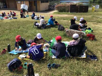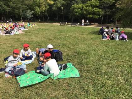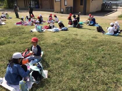 館内見学後、芝生広場に移動し、子どもたちが楽しみにしている弁当の時間です。