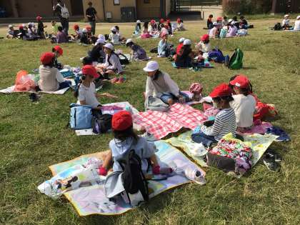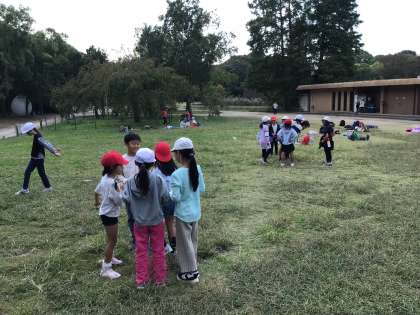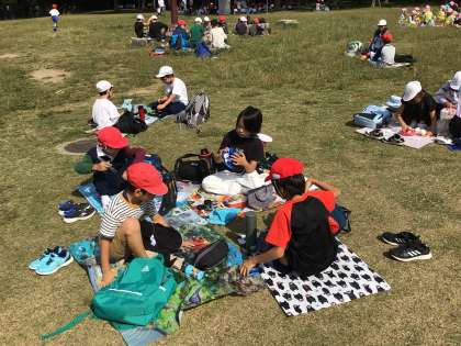 弁当を食べ終えた後は、芝生広場で楽しく遊び、過ごしています。