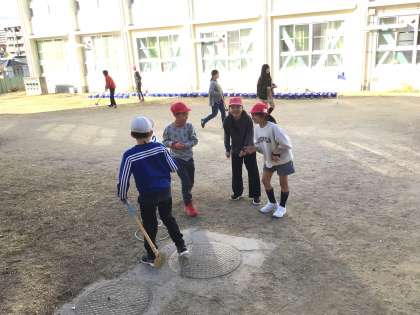 中庭で行われているパターゴルフです。子どもたちみんな、とても楽しそうに取り組んでいます。
