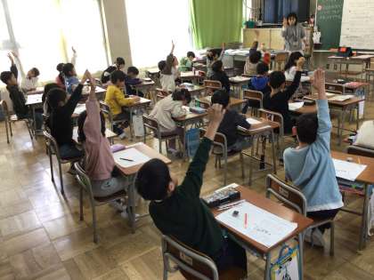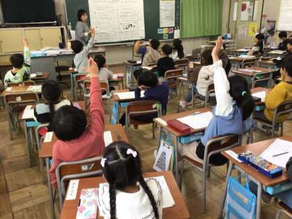 目盛りがついている線を見ながら、例えば、「20が3大きくなる」或いは「42が5小さくなる」とは幾つの数を表すのかなどを学習しています。子どもたちは、悩みながらも懸命に学習しています。