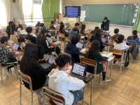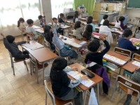 木陰でレジャーシートを敷いて、楽しくおしゃべりしながら食べています。
