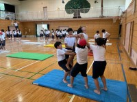 菅原小学校区に住む特別支援学校に通う子どもと本校の支援学級の子どもとの交流会を行っています。レクレーション等を通して、交流を図り、一緒に楽しい時間を過ごしています。同じ地域の中で育つ子ども同士が繋がりを持ち、地域社会の中で積極的に活動していく素地作りも目的としています。