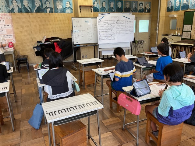 5年生の音楽の時間では、「キリマンジャロ」の演奏に取り組んでいました。🎵
