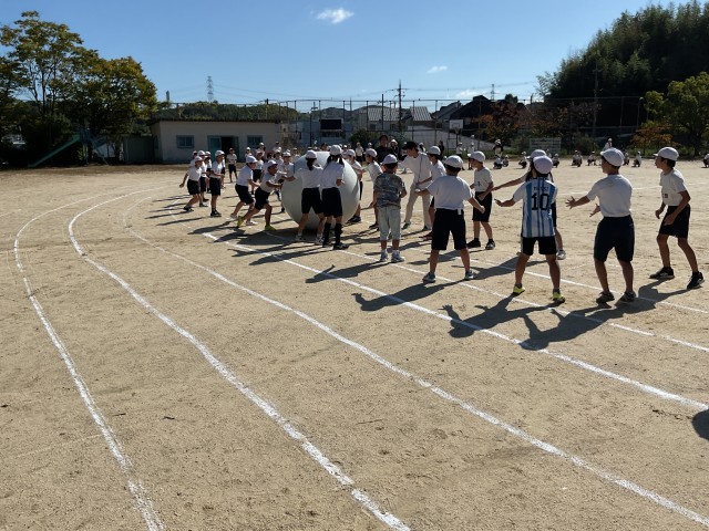 大玉転がしは初めて取り組む種目でしたが、列を作って協力しながら練習することができました。転がす速さや方向を工夫するなど、声をかけ合う姿が印象的でした。